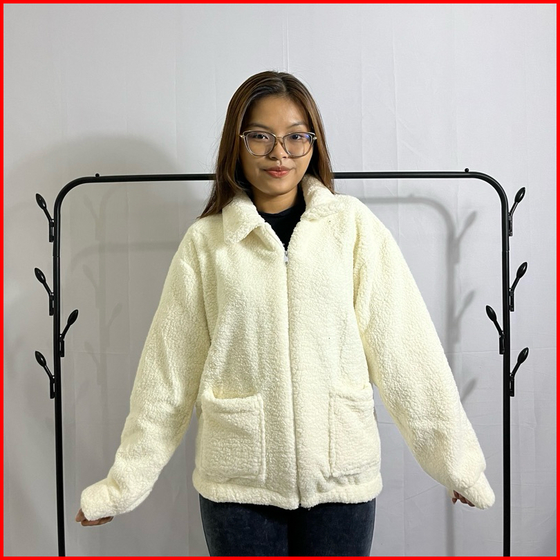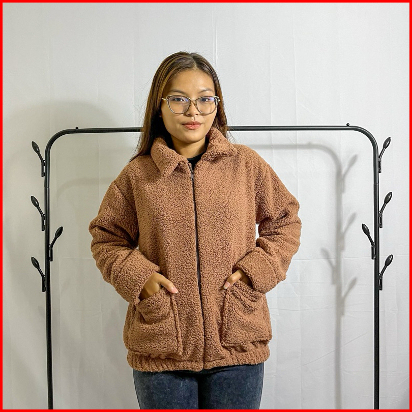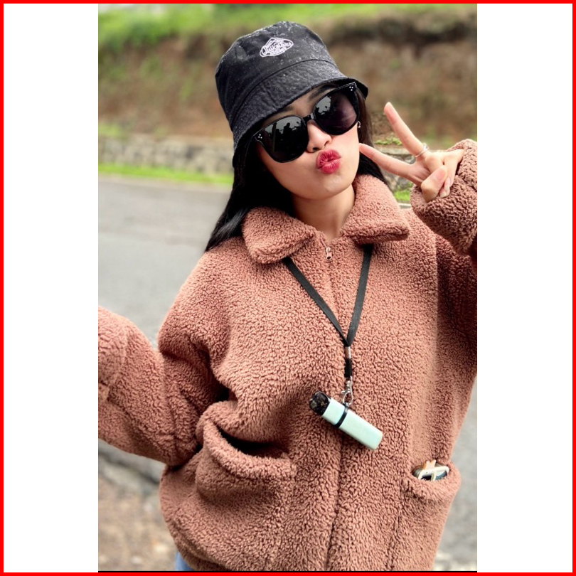 Sweater Jaket Bulu Sherpa Wanita Coat Saku Zipper
