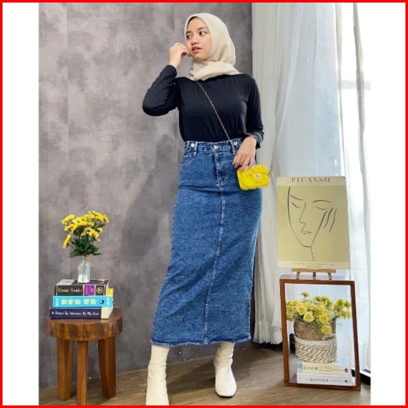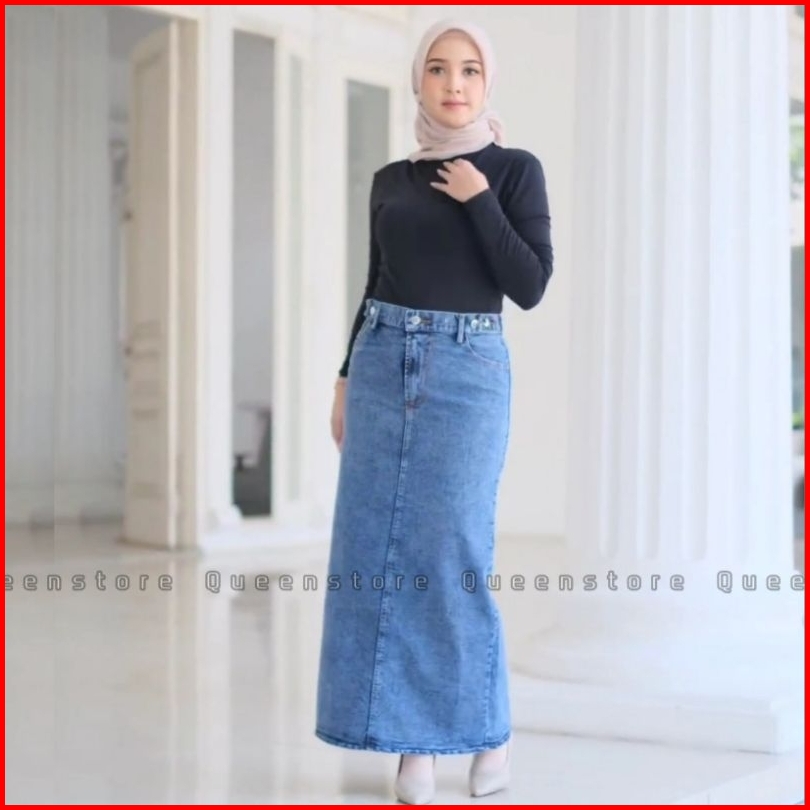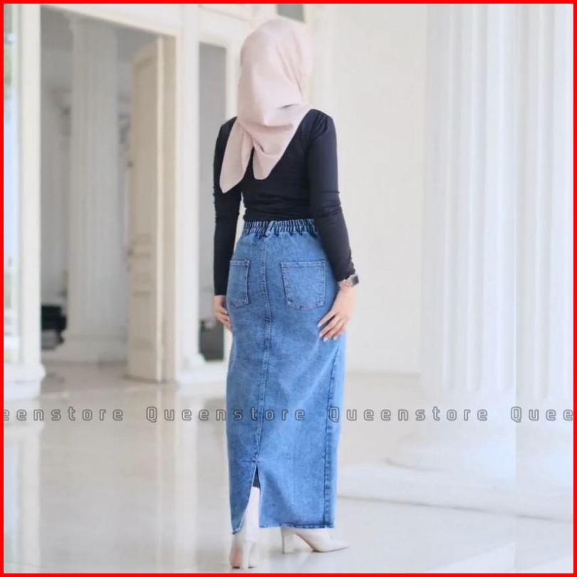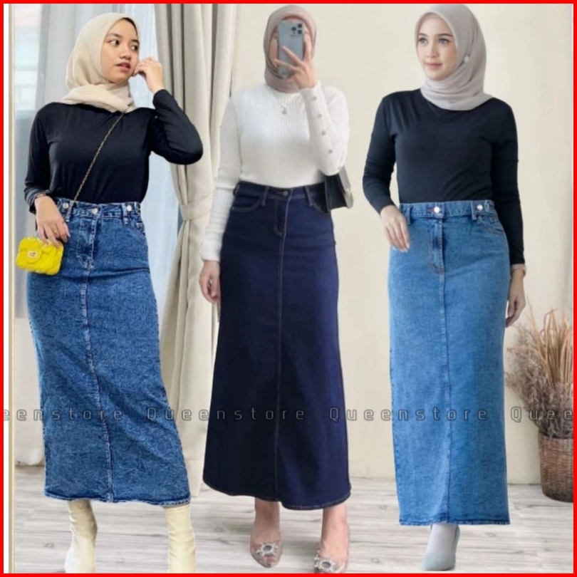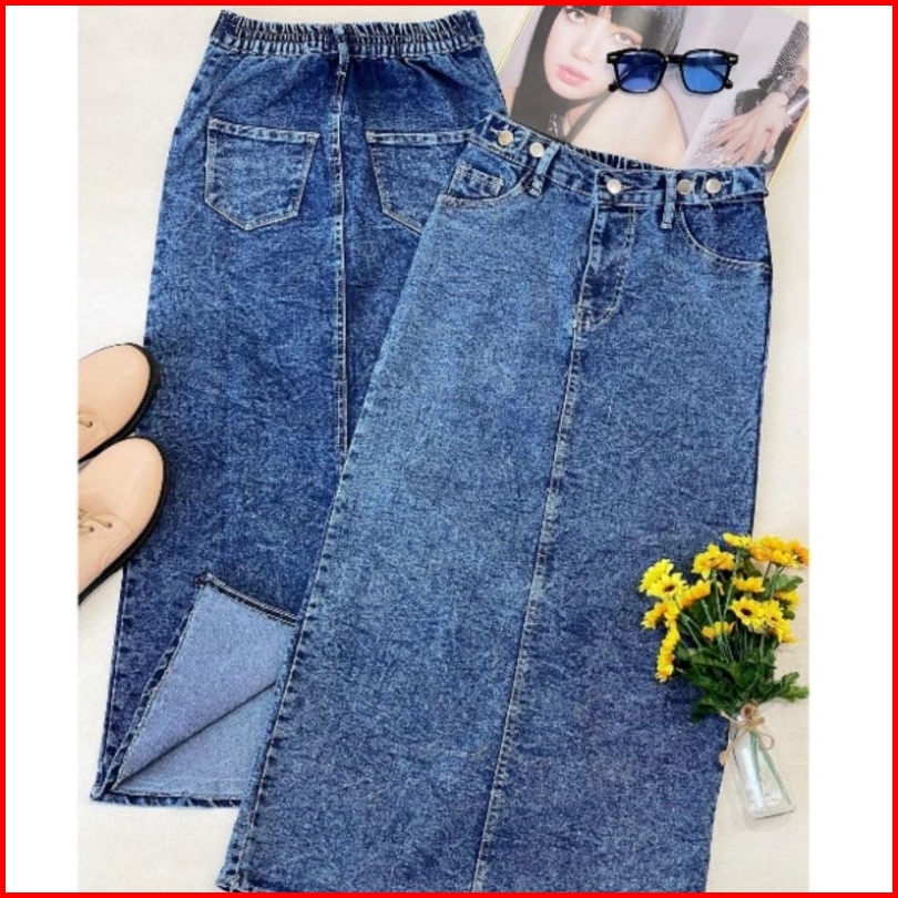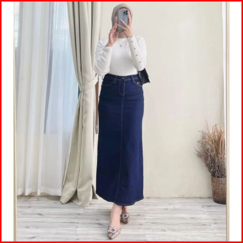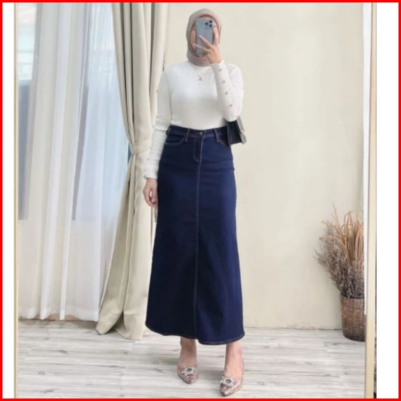 Rok Theana Jeans Belah Theana Rok Jeans Stretch Span Panjang Rok Denim Jeans Wanita Skirt Premium Terbaru