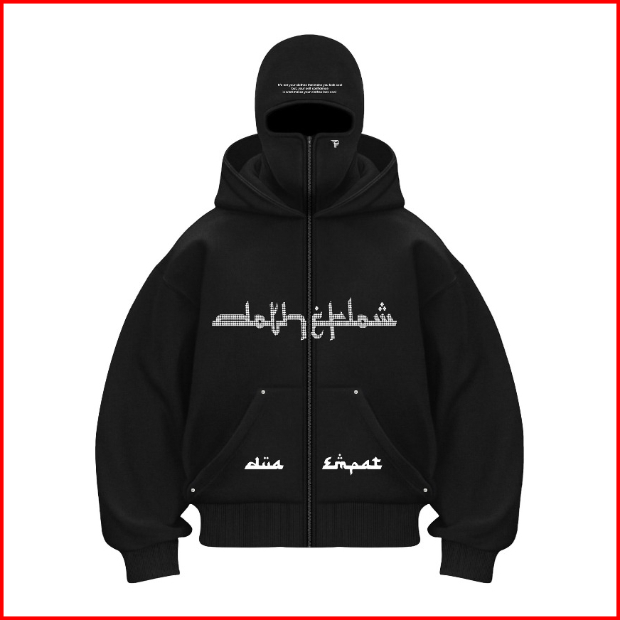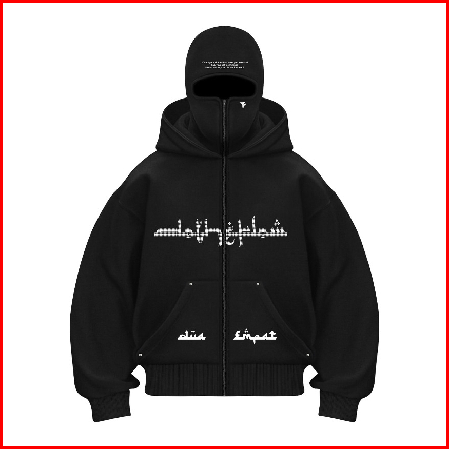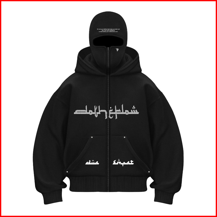 Do The Flow Hoodie Balaclava Zipper Diamond Jaket Boxy Hitam