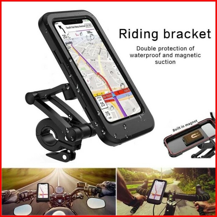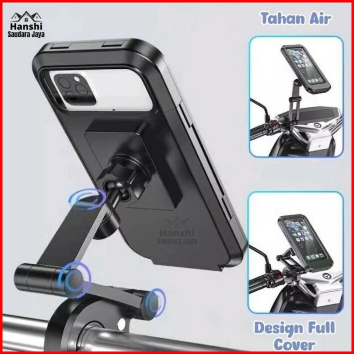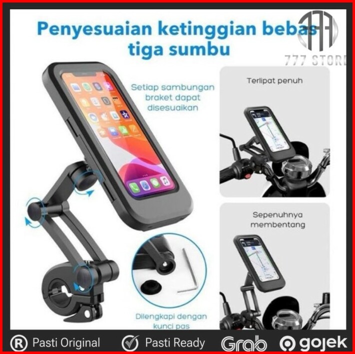 Phone Holder Stang Spion Motor Sepeda Anti Air 360 Original Waterproof Dudukan Tempat Hp Handphone
