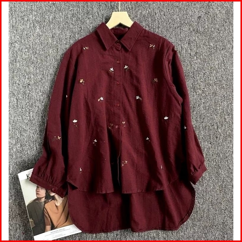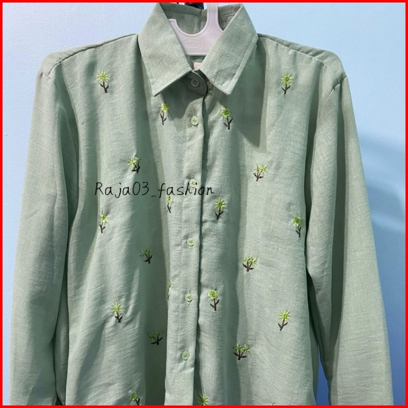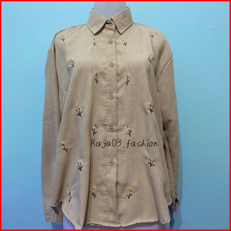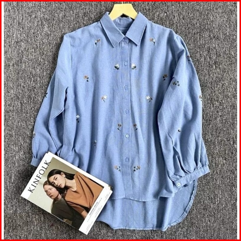 Kemeja Linen Bordir Wanita Kekinian Korean Style Kemeja Wanita Terbaru