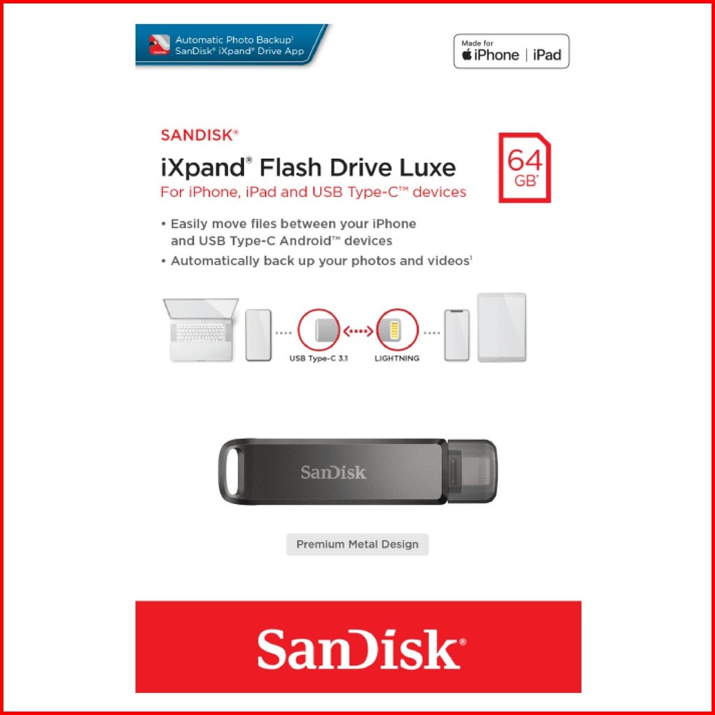 Sandisk Ixpand Luxe 64 Gb 128 Gb 256 Gb Flash Drive Otg Lightning And Type C For Iphone Ipad Mac Android - 64gb 128gb