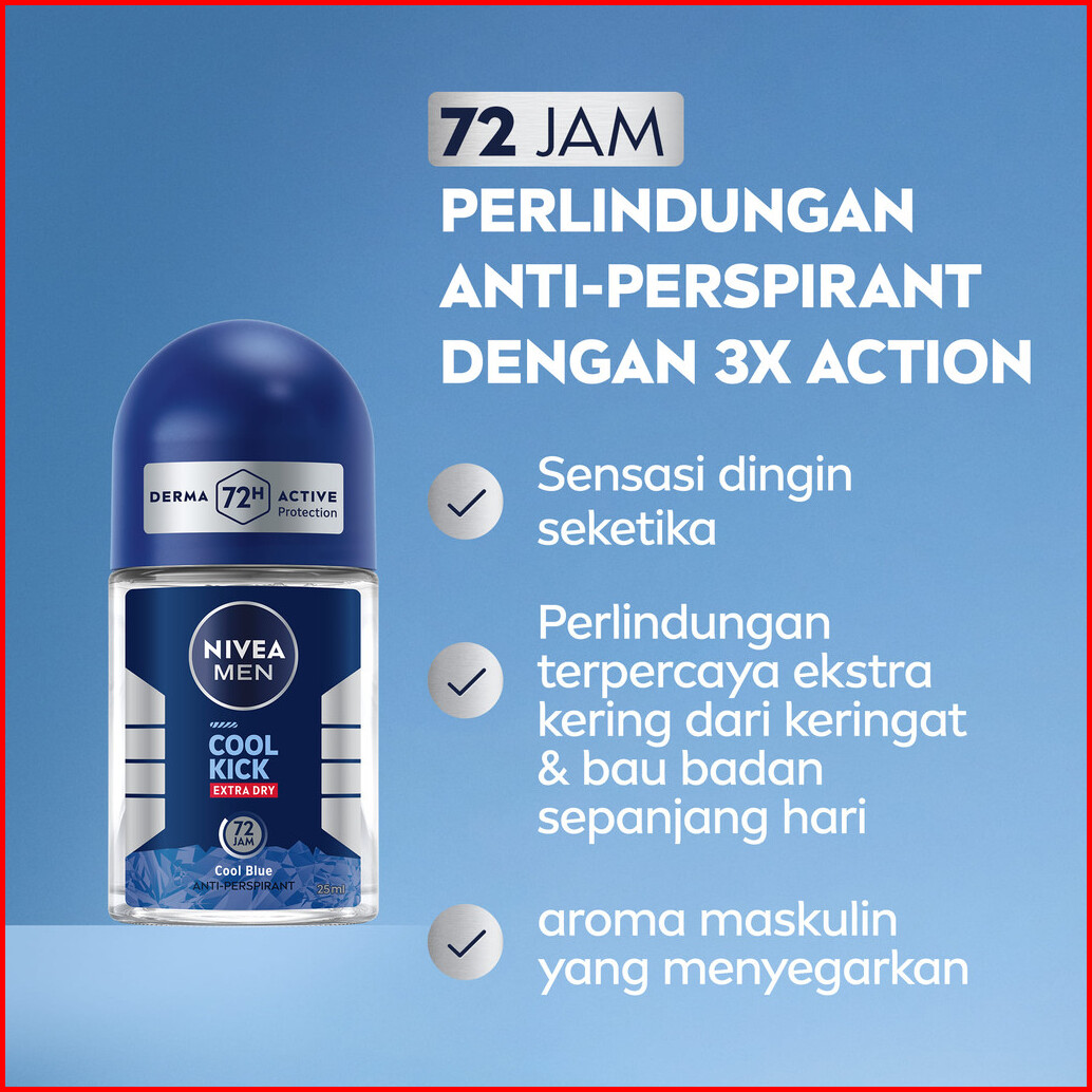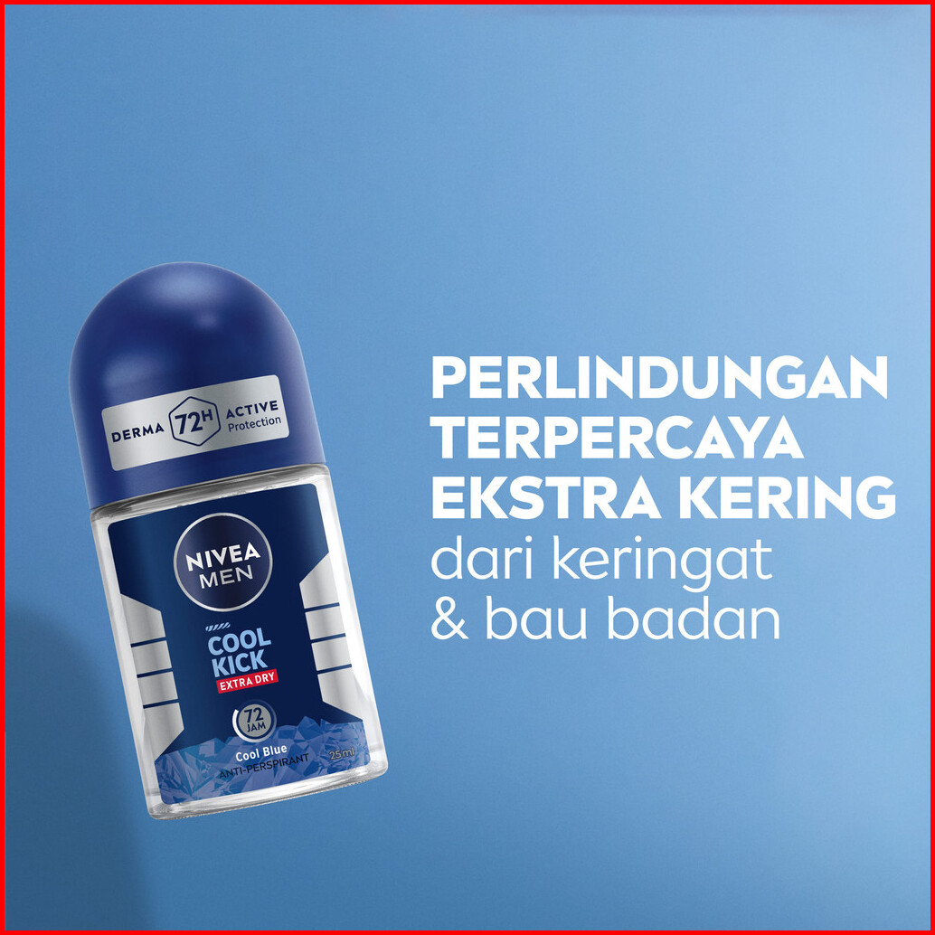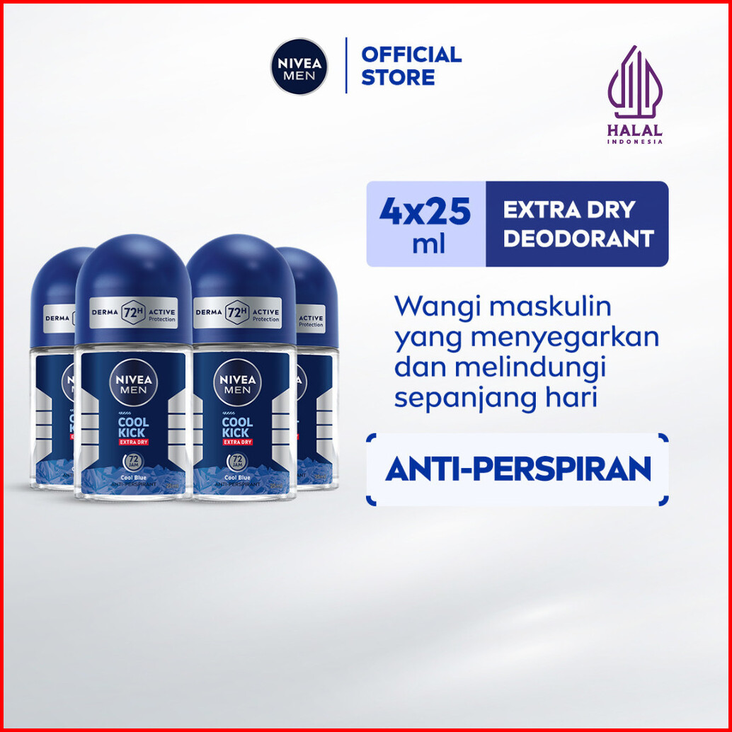 Paket Hemat Isi 4 Nivea Men Deodorant Roll On Cool Kick 25ml - Deodoran Pria Perlindungan Ekstra Kering Dari Keringat Ba