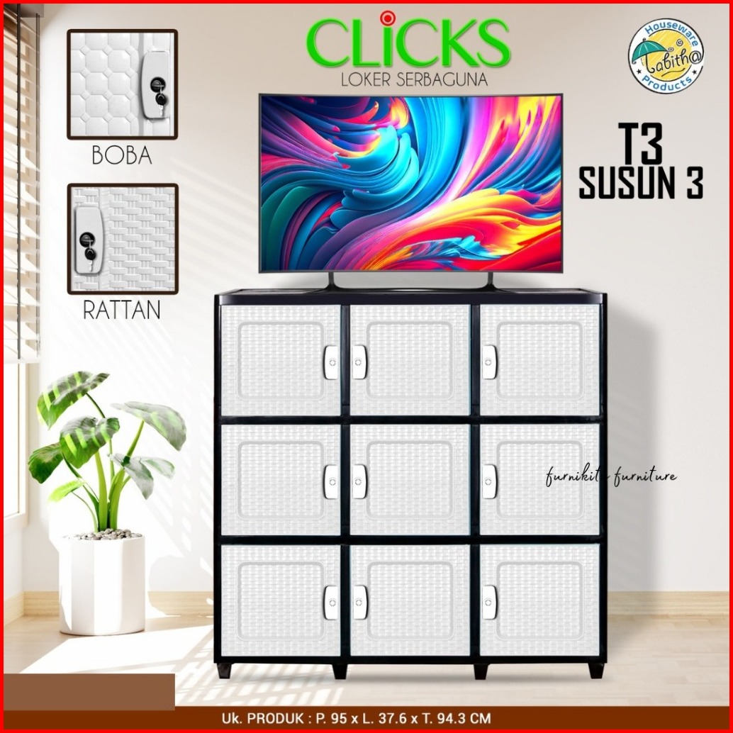 Lemari Plastik Serbaguna Tabitha Clicks Tower 3 Locker Box