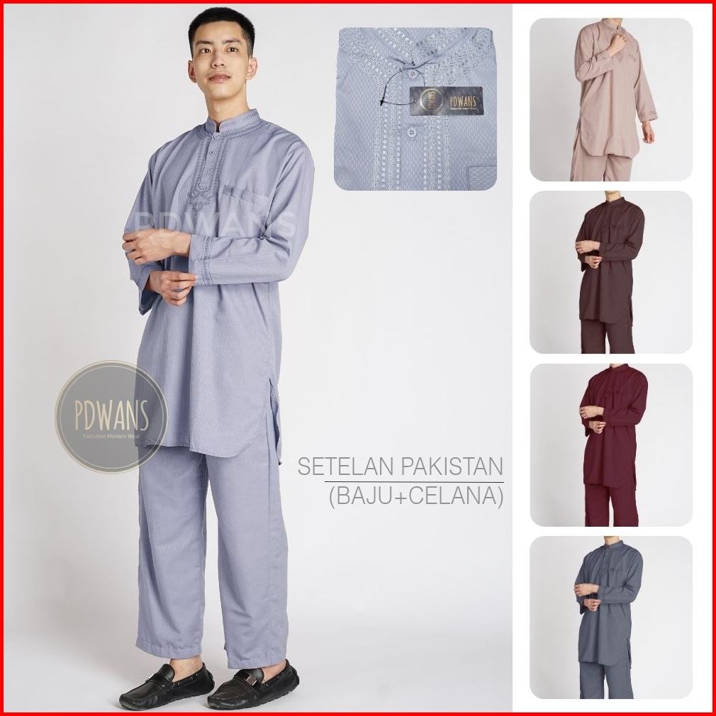 Pdwans Setelan Pakistan Dewasa Poli Katun Warna Baju Koko Bordir Muslim Baju Umroh Pria Pa01warna