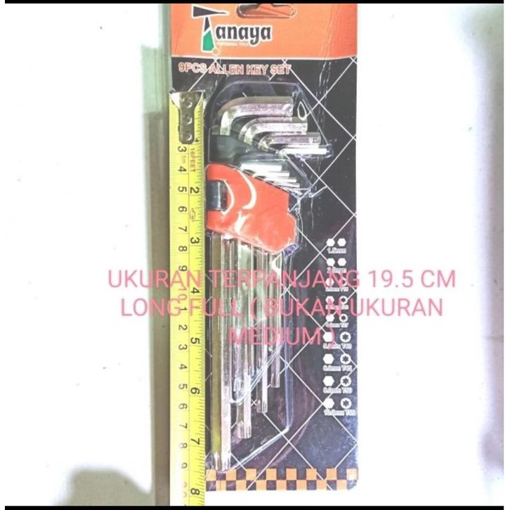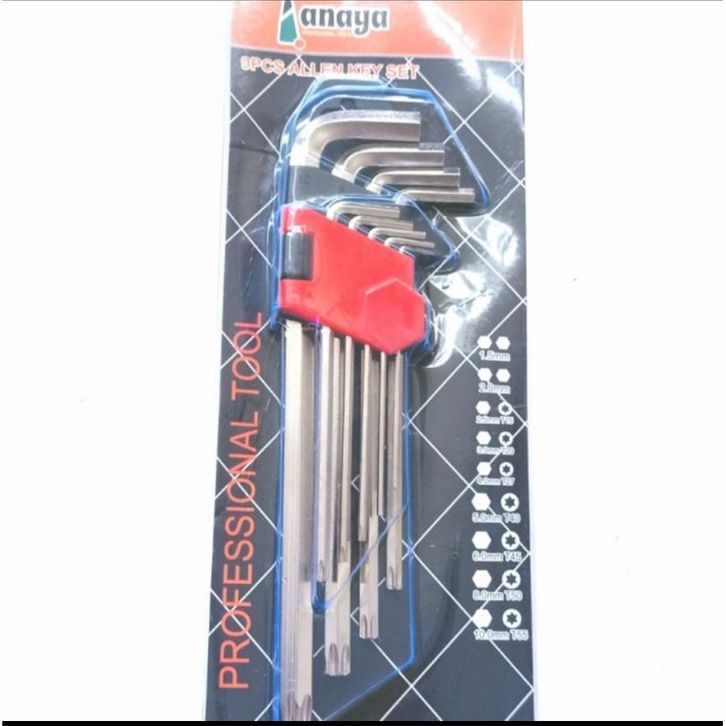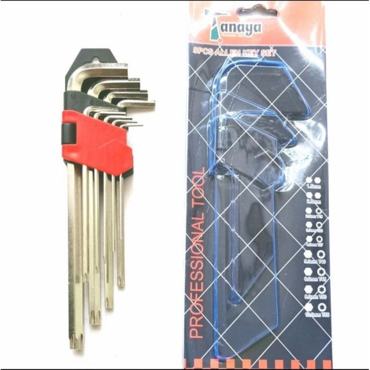 Kunci L Panjang + L Bintang Set Kombinasi 9 Pcs Combination Long Hex torx Key set