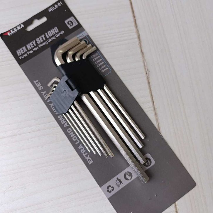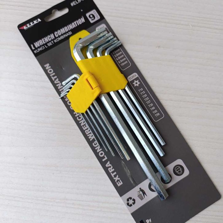 Kunci L Panjang Kombinasi Set 9Pcs Ujung Segi Enam Hex Key Wrench Long Hexagonal