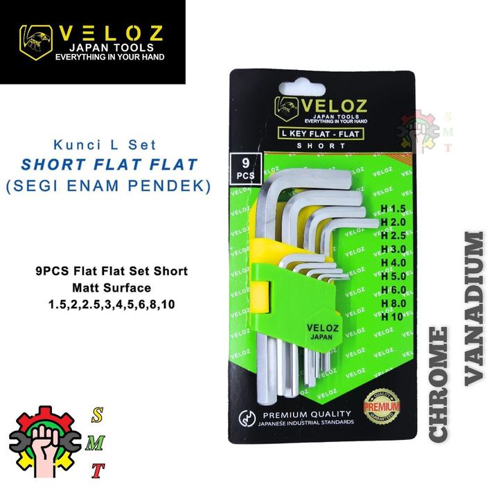 Kunci L Set Flat Flat Short 9 Pcs Veloz Chrome Vanadium steel SUNMURAH TEKNIK Surabaya