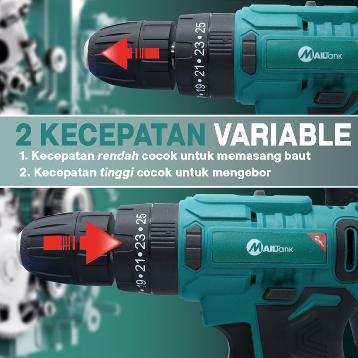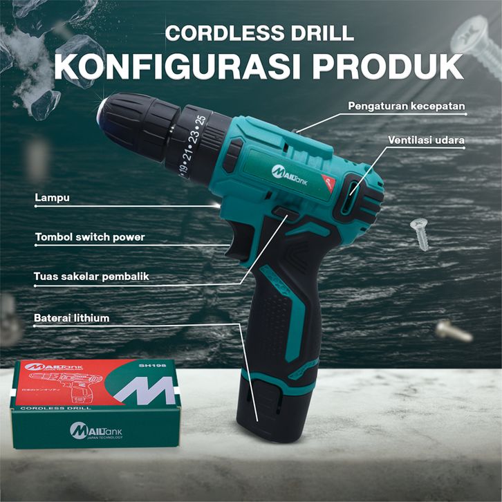 MAILTANK SH19 Bor Baterai 12v Mesin Bor Tangan Cordless Drill Bor Tanpa Kabel Set Bisa Bolak Balik