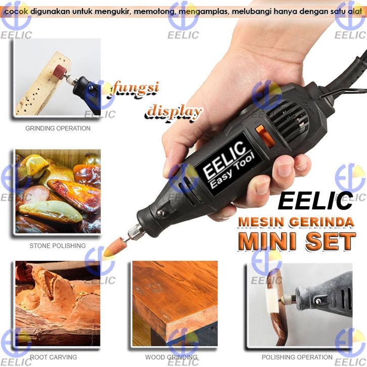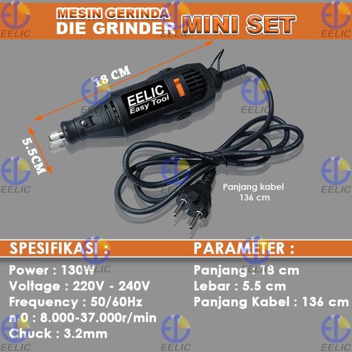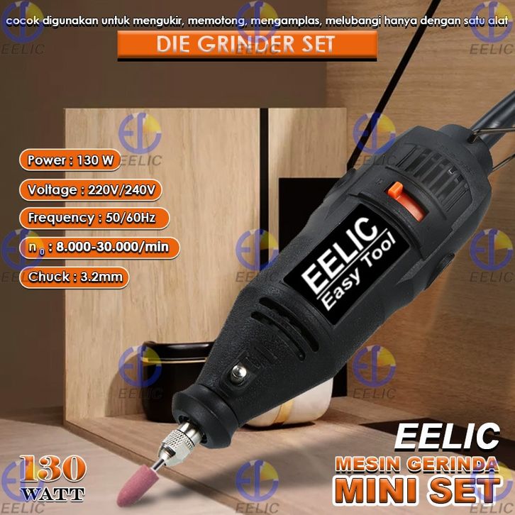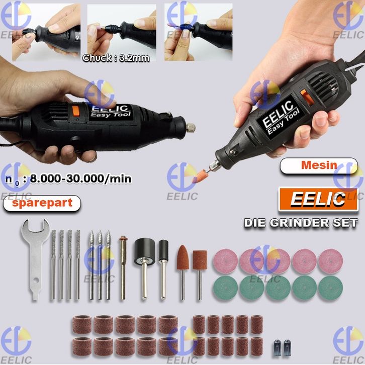 EELIC MEG-J125POLOS Mesin Gerinda Mini Set Polos Die Grinder 3mm Lengkap Dengan Sparepart