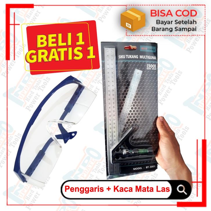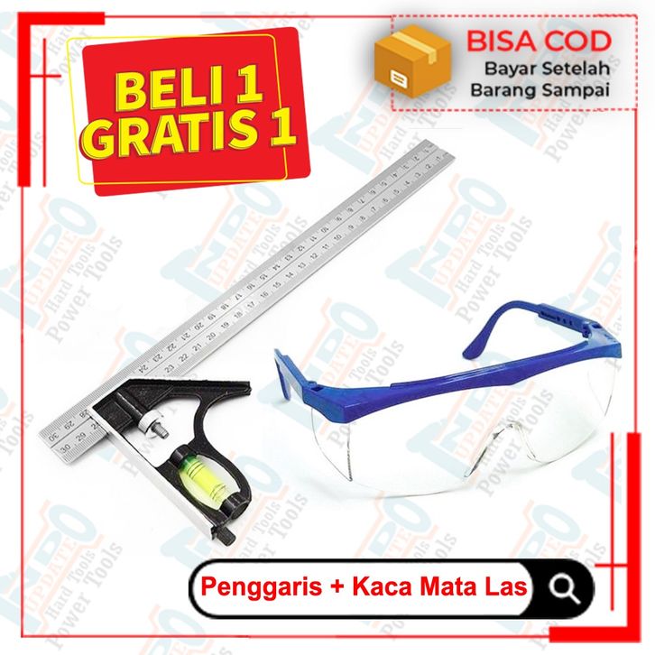 Paket Penggaris Wateass Siku tukang Mistar Wateass 3 cm + Kacamata Safety