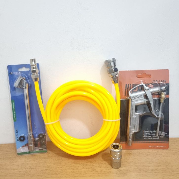 Paket 4 In 1 Selang Kompresor Re Gulungan 6m + Tire Chuck + Air Duster Metal JLD + SF2 Coupler