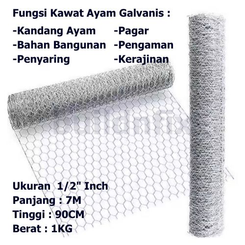 KAWAT AYAM / KAWAT GALVANIS / CHICKEN WIRE 1/2" INCH 9CM X 7 METER