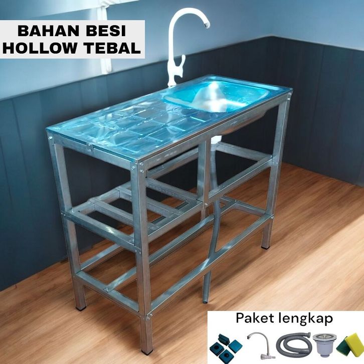 Wastafel Cuci Pi Portae Set, Kitchen sink Set PREMIUM 96cm, Wastafel Rangka Besi Hollow KOKOH