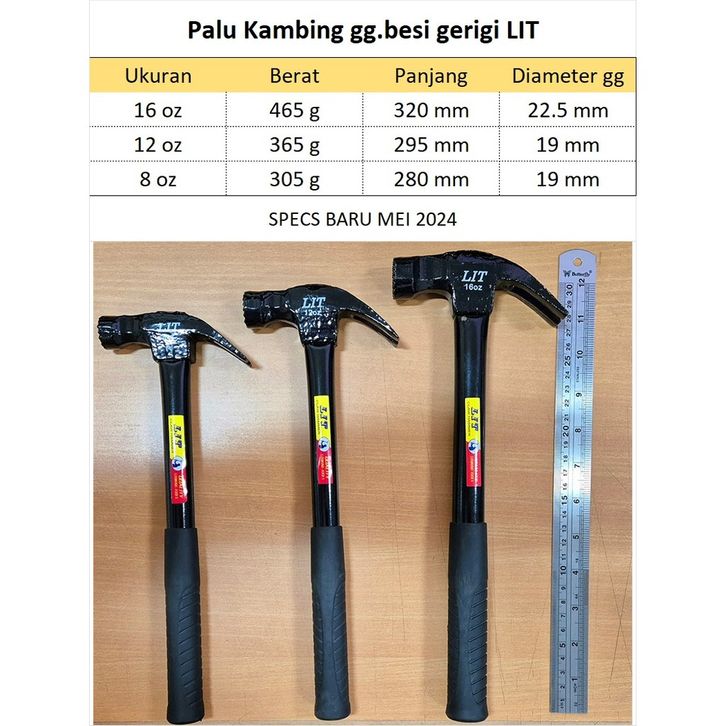 Palu Kambing Stayvic Geri Gagang Besi Beagai Ukuran oz 12oz 16oz