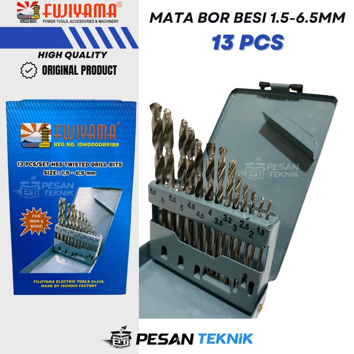 Mata Bor Set Besi 13Pcs Set Fujiyama HSS Drill Bits 13 pcs 1.5 - 6.5 mm