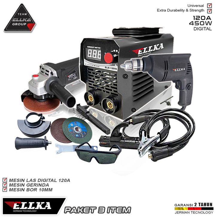 3in1 Mesin Las Listrik 45 watt MMA 12A BT 45 watt + Mesin Gerinda 4inch + Bor 1mm FREE MATA SET