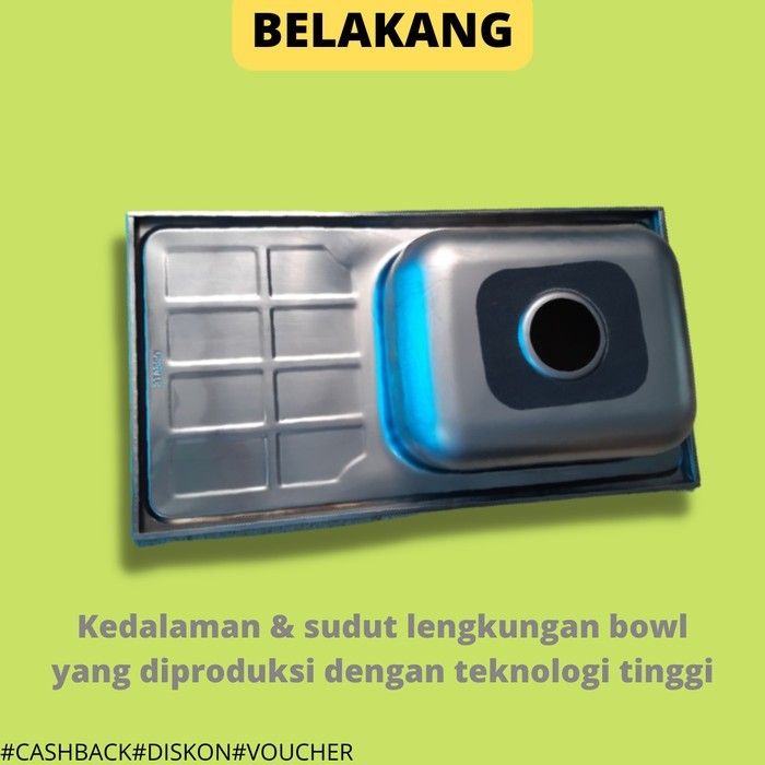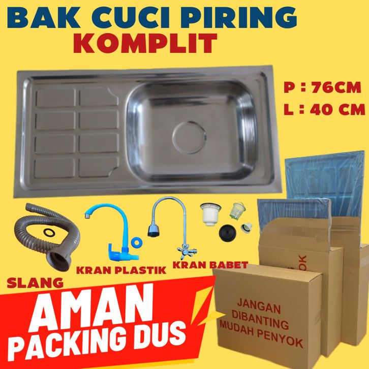 BAK Cuci Pi 76cm / Wastafel 76 CM x 4 CM / Sink Stainless Steel + Sayap