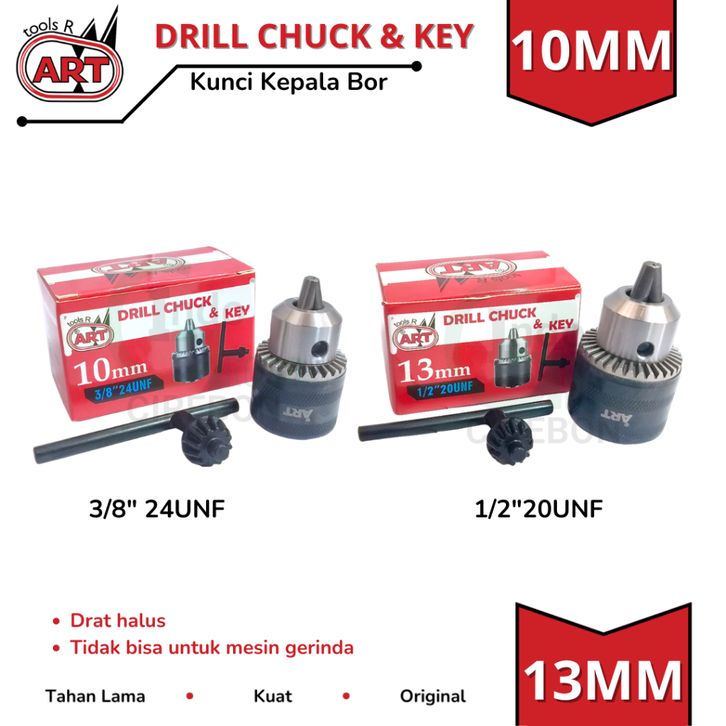 Kepala Mesin Bor 1mm 13mm + Kunci Drill Chuck Key 1 mm x 3/" & 13 mm x 1/2" Drat ART IWA
