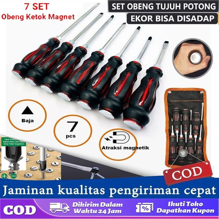 7PCS/SET Obeng Ketok Magnet Phillips Dan Plus Obeng Tip Magnetic Multifungsi Screwdriver Tip