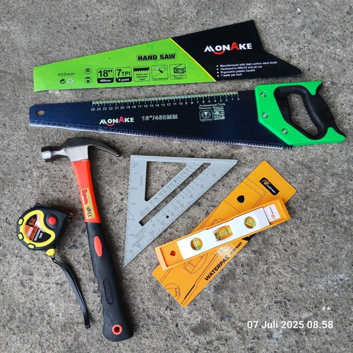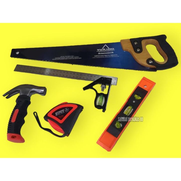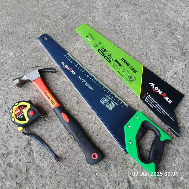 PAKET TUKANG - Gergaji kayu baja asli siap pakai - Palu kambing - Linggis mini - Meteran viper