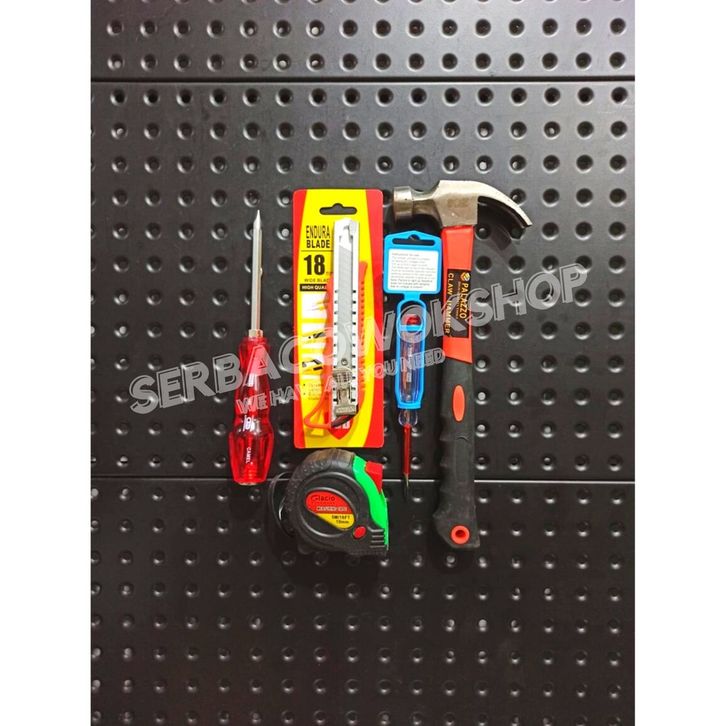 Paket Alat Tukang Palu Oz - Obeng Ketok 2 In 1 - Meteran 5 m - Tespen AC - Cutter Besi