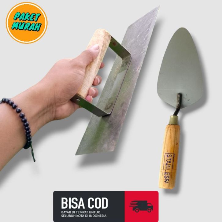 Paket 2 Pcs Raskam Acian Penghalus Tembok Dan Sendok Semen Stainless - Raskam Plat Baja Dan Cetok