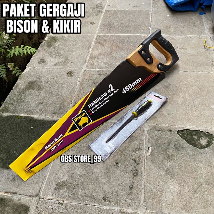 Paket Gergaji Bison dan Kikir VPR - Gergaji Potong Belah Kayu Bambu Triplek Super Tajam - Gergaji