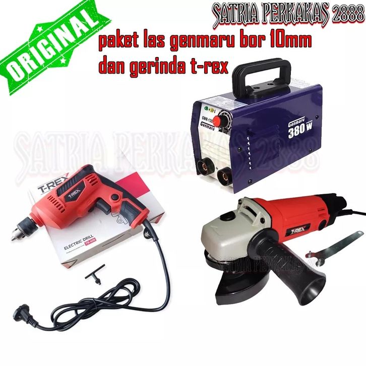 KHUSUS PAKET TUKANG 3 ITEM MESIN LAS GENMARU 3WATT MESIN BOR 1MM T-REX DAN MESIN GERINDA 4INCH T-REX