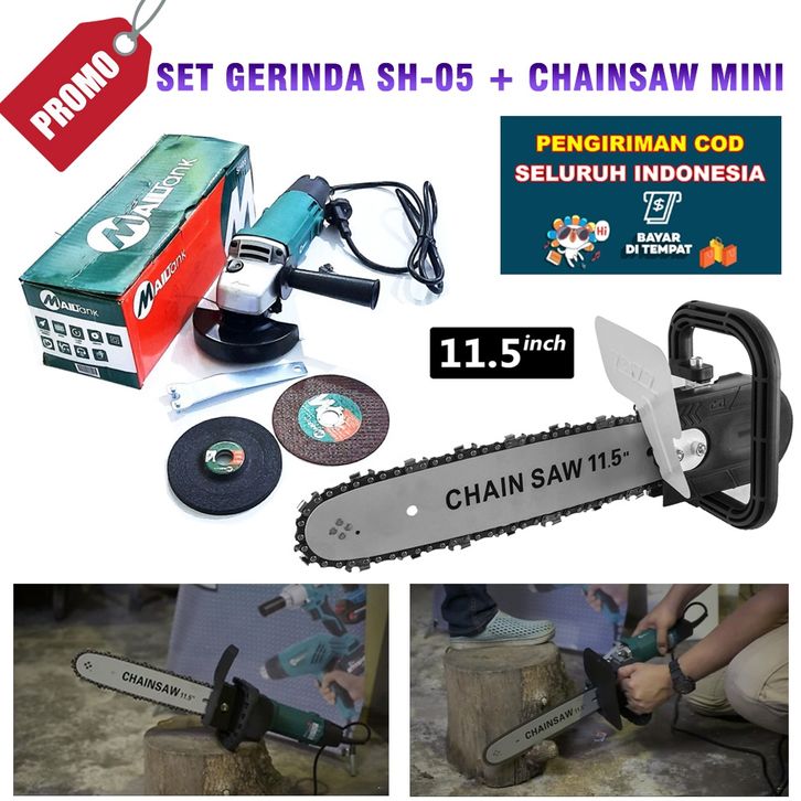 Paket Mesin Gerinda Mailtank SH5 + Adaptor Chainsaw iwa Gergaji Kayu mini chainsaw 11,5