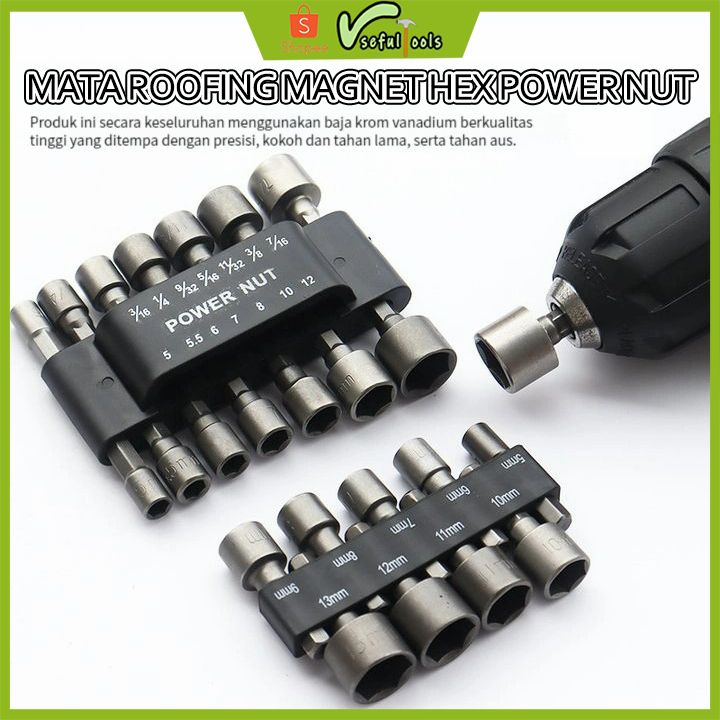 Usefultools 9/14pcs Mata Baut Roofing Hex Nut Setter 1/4 Driver Shock Magnetic Socket Bit