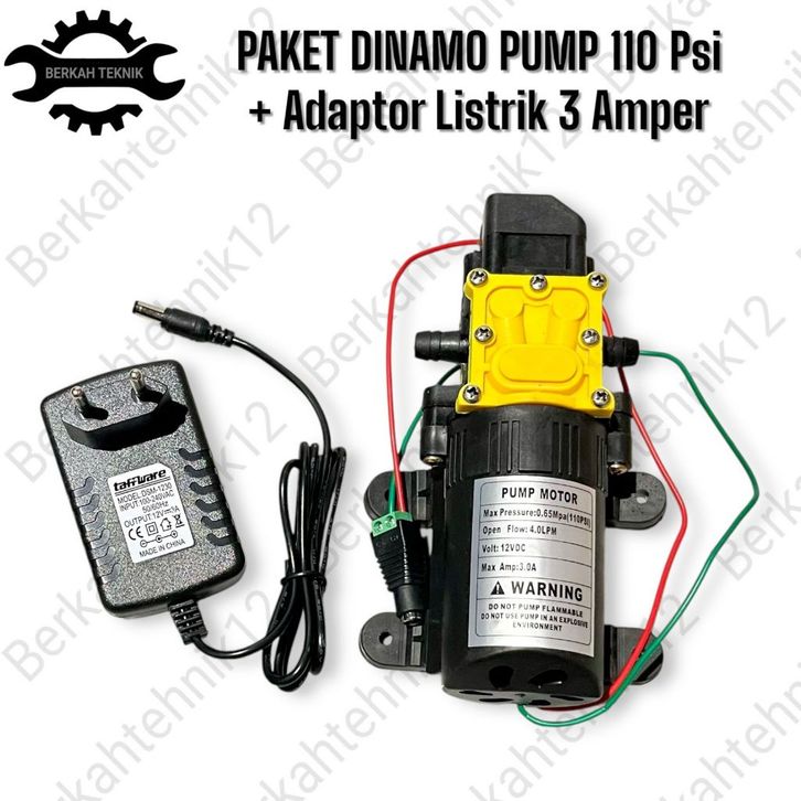 paket Pompa Air Elektrik Hh Pressure 11PSI 4L/min alat cuci motor mobil + adaptor listrik 12v 3a