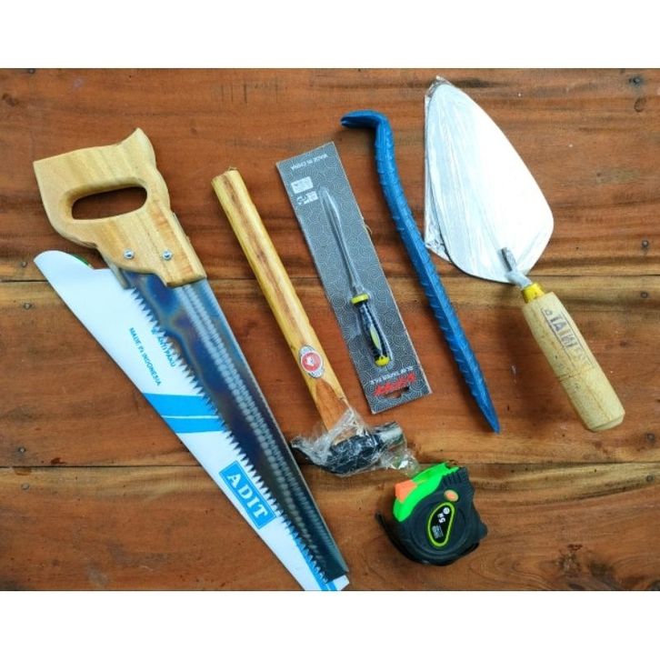 PAKET TUKANG MURAH -Gergaji Kayu Baja Asli Siap Pakai -Palu kambing -Linggis mini -Meteran 3M