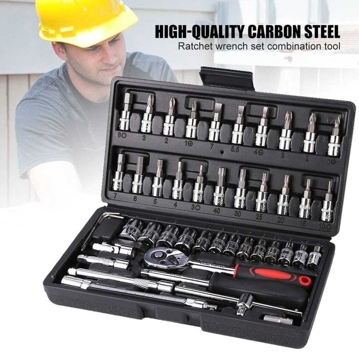 Kunci sok 46pc set socket 1/4 full lengkap socket tool pas L Motor Mobil best kunsi socket 46pcs 1