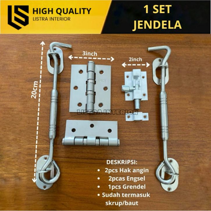 Set Paket Jendela Siap Pasang Hak Angin Engsel Grendel