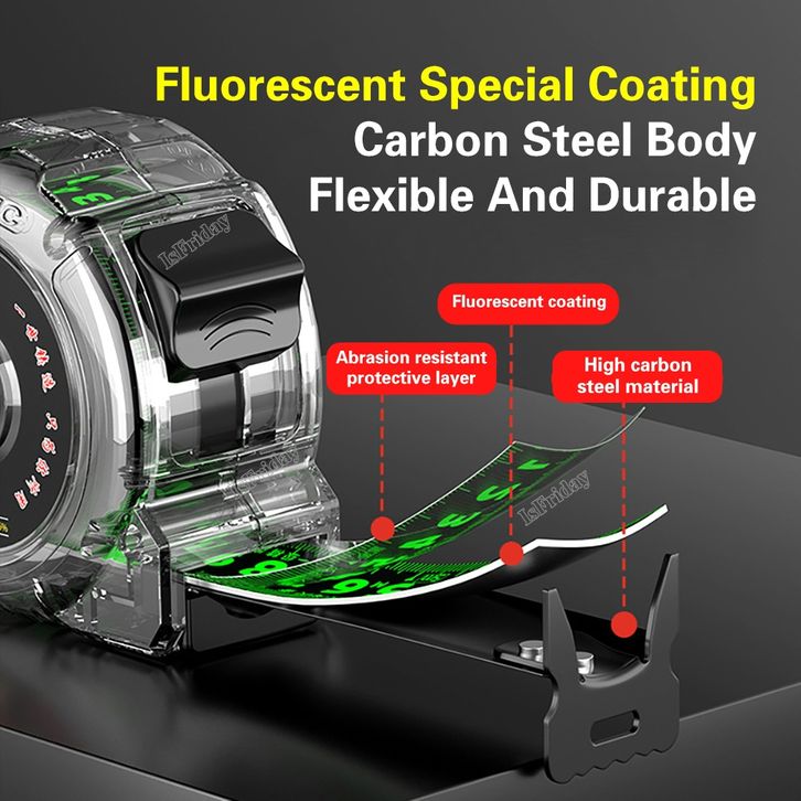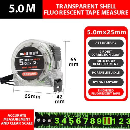 Meteran transparan Pita Pengukur Baja Meteran tukang Tape Measure transparan fluoresen Tape Measure