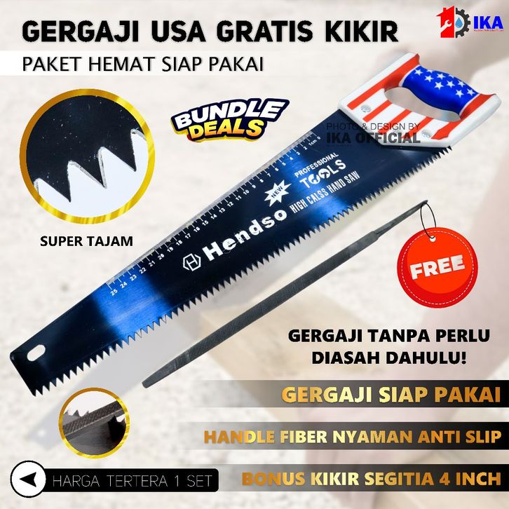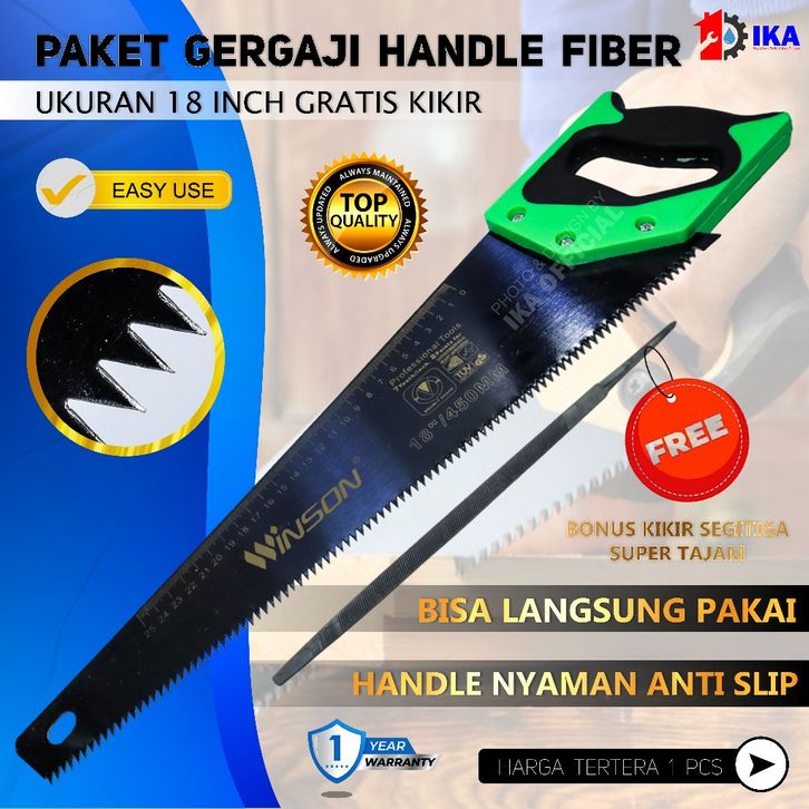 PAKET GERGAJI BONUS KIKIR Gergaji Kayu Gagang Karet BELAH POTONG Satuan Berkualitas Tangan Gg Karet