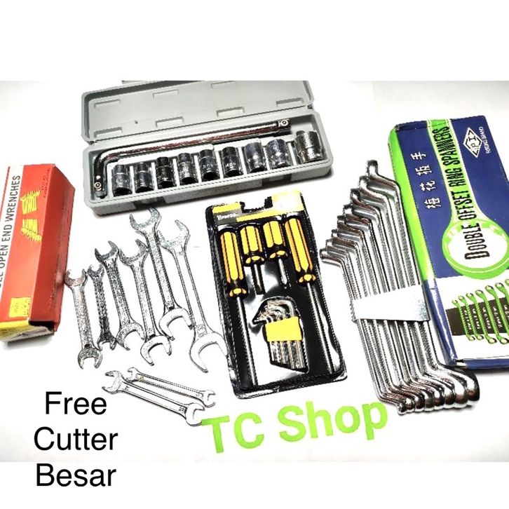 PAKET Kunci Tool Set : Kunci Sok 1 pcs + Kunci Set + Kunci Pas Set + Obeng Set & kunci L set