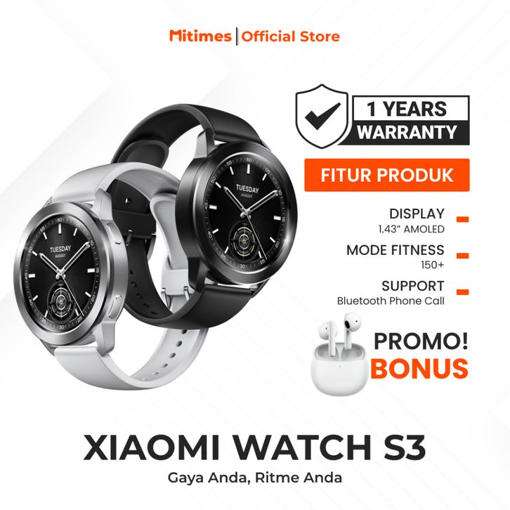 Xiaomi Watch S3 1.43 Inch Amoled 150+ Mode Olahraga Tahan Air 5ATM Baterai Tahan 15 Hari