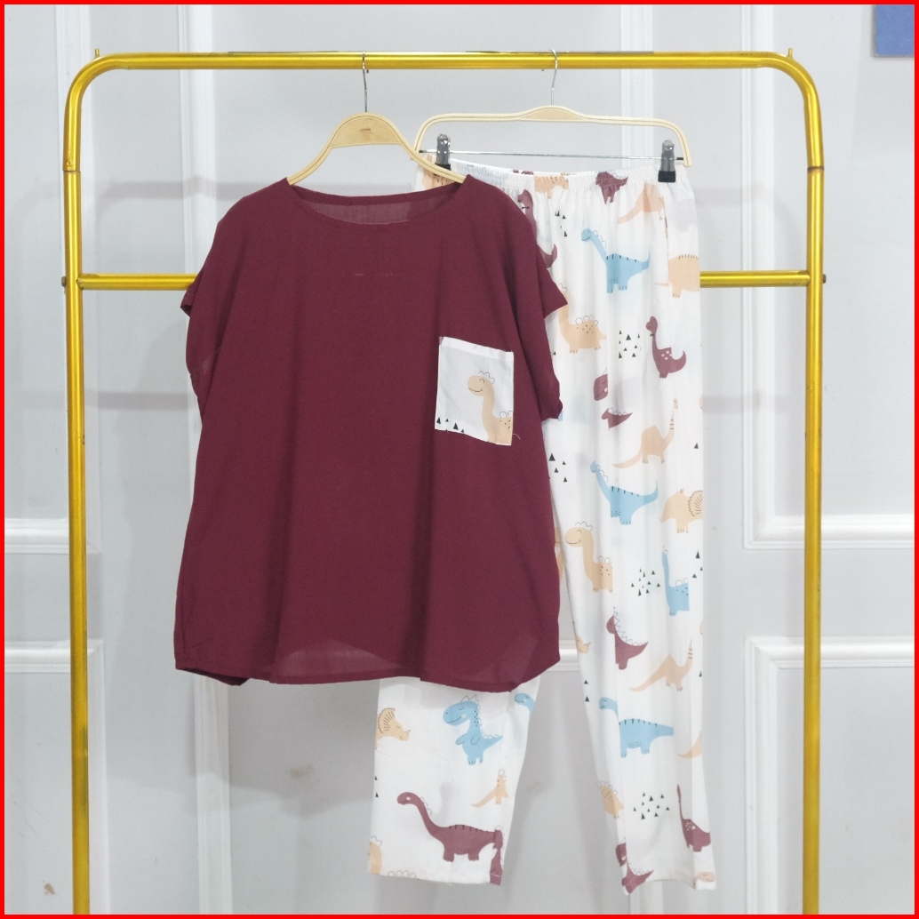 Setelan Baju Tidur Wanita Busui Piyama Wanita Polos Babydoll Dewasa Rayon Jumbo Premium Ld 114-112 Cm
