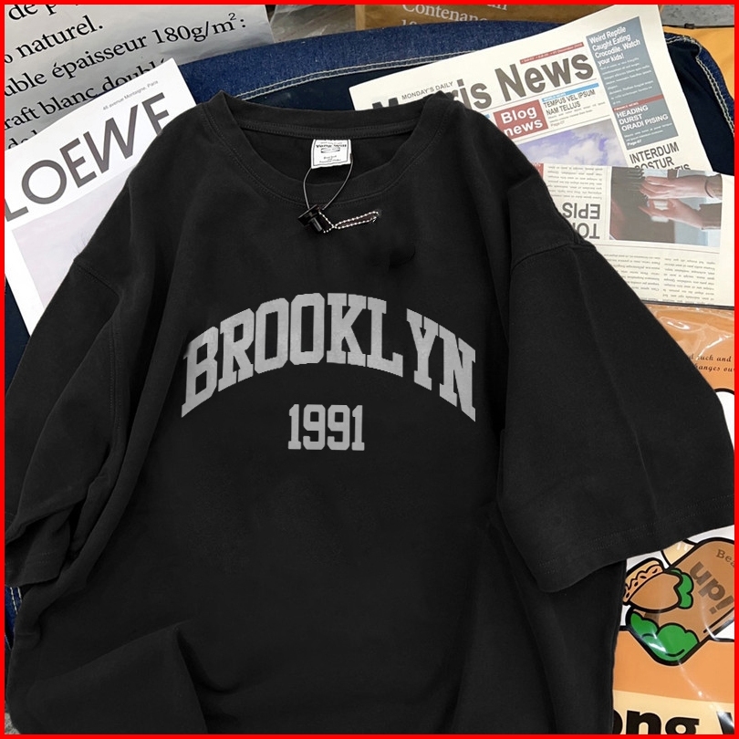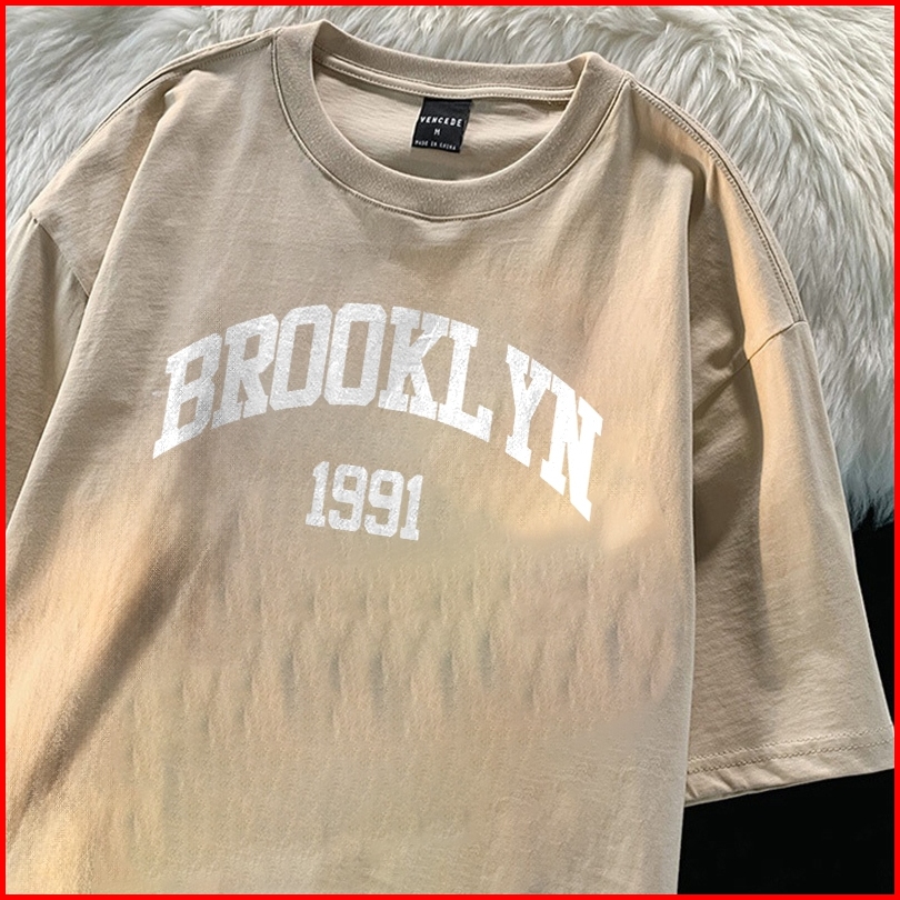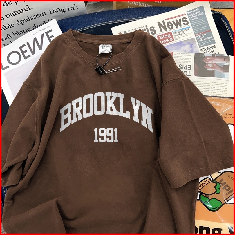 Fastfash Baju Kaos Pria Dan Wanita Lengan Pendek Oversize Vintage Brooyl Yn 1991 Netral T Shirt Pria Atasan Cokelat Cowo