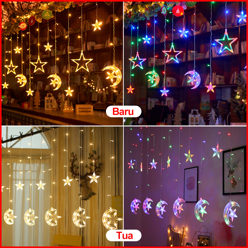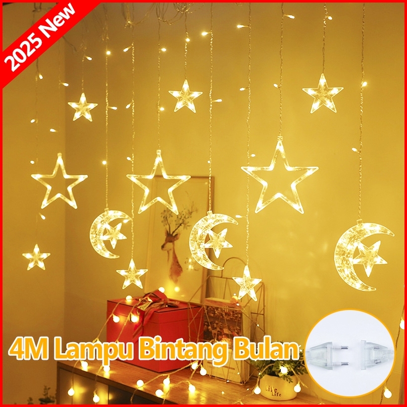 Ready Stock2025 New Lampu Hias 17 Agustusan 4 Meter Lampu Hias Lampu Kelap Kelip Lampu Tirai Bintang Bulan Lampu Hias Ka