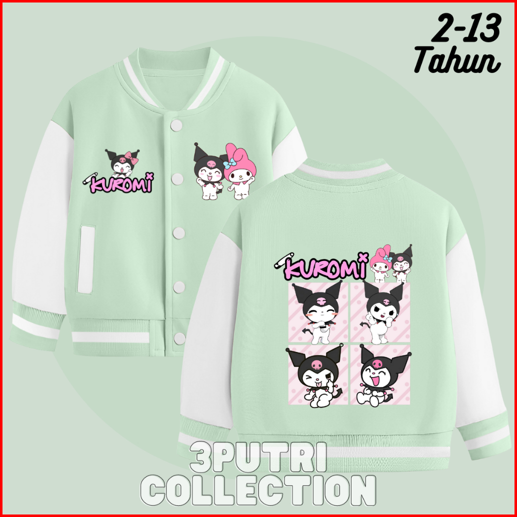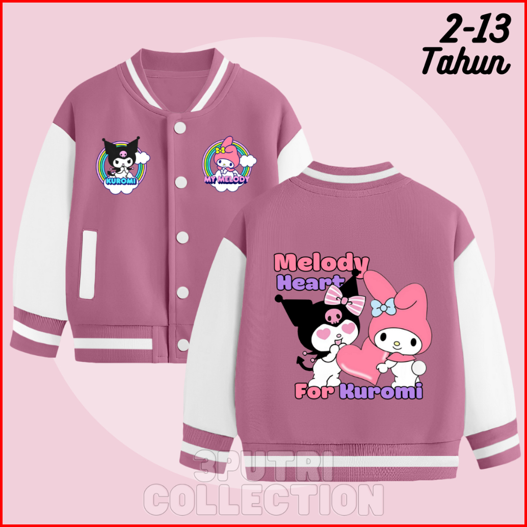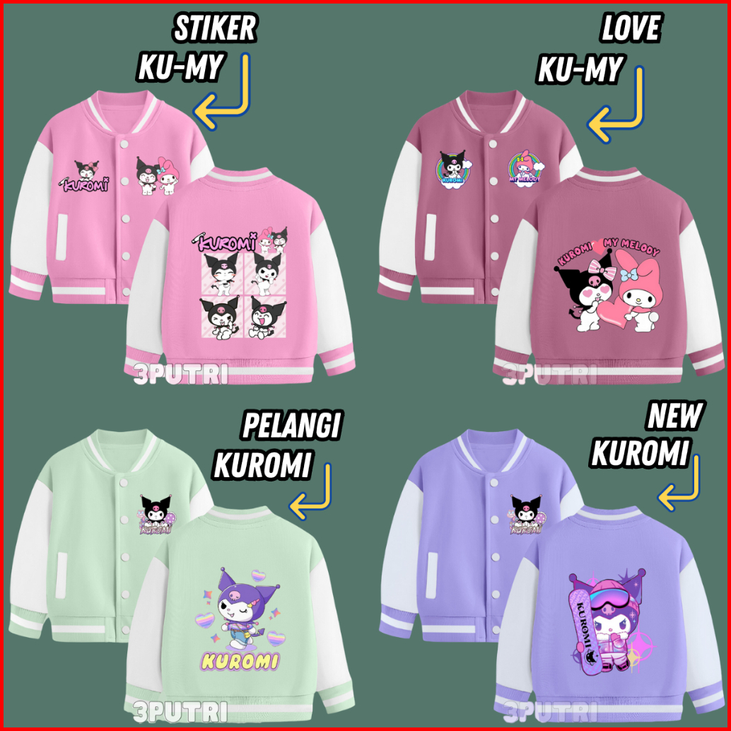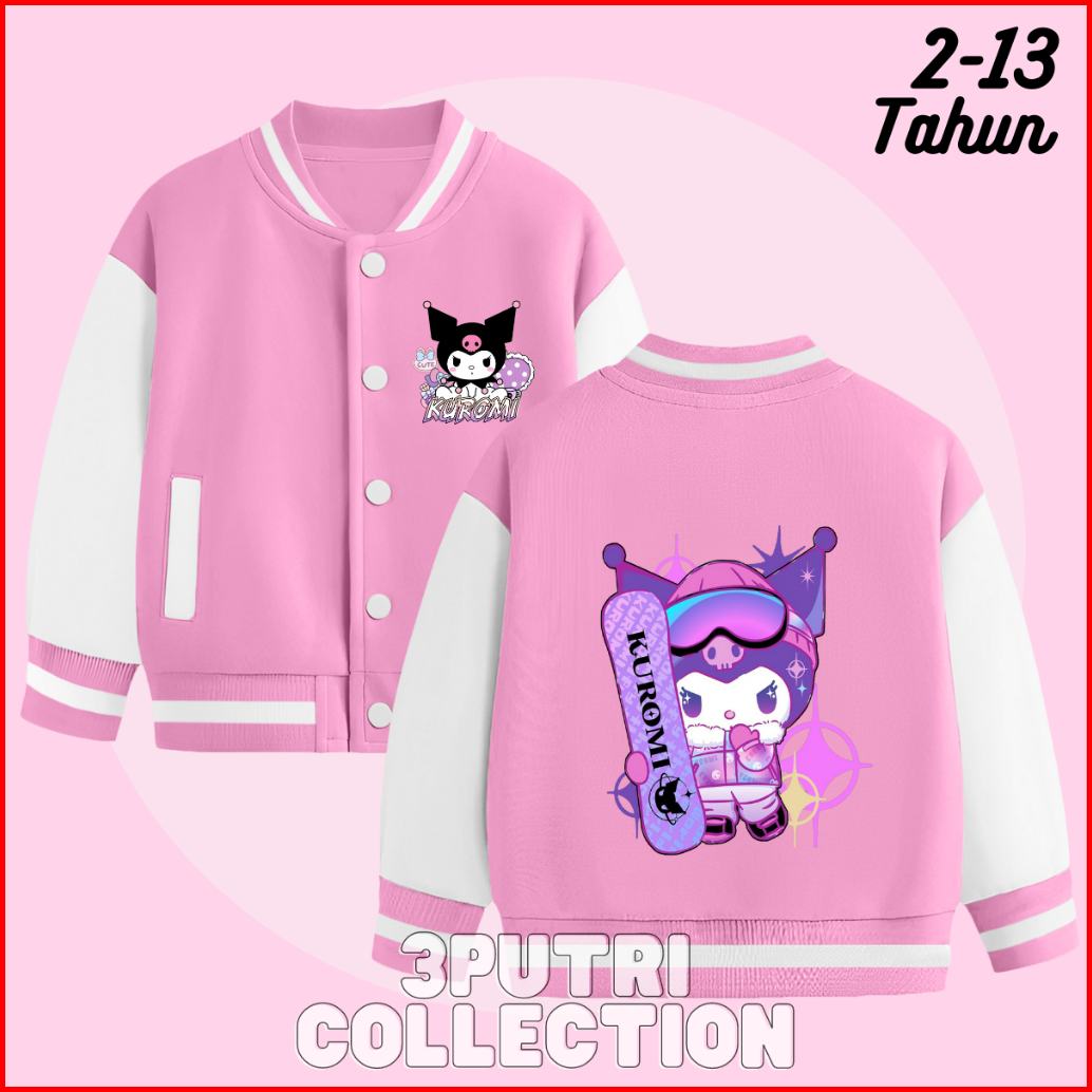 Jaket Baseball Kuromi Anak Perempuan Usia 2-13 Tahun Jacket Varsity Anak Cewek Lucu Terbaru Karakter Sanrio