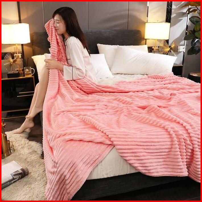 Selimut Bulu Ukuran King 180x200 Salur Polos 180x200 Super Lembut Tebal Murah Berkualitas Kado Kain