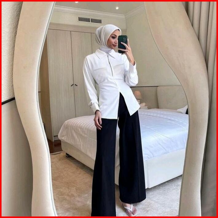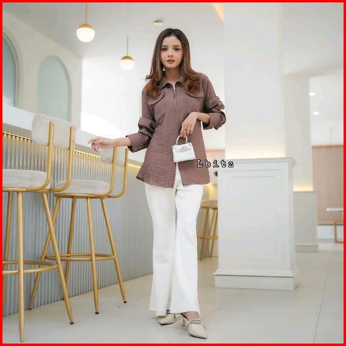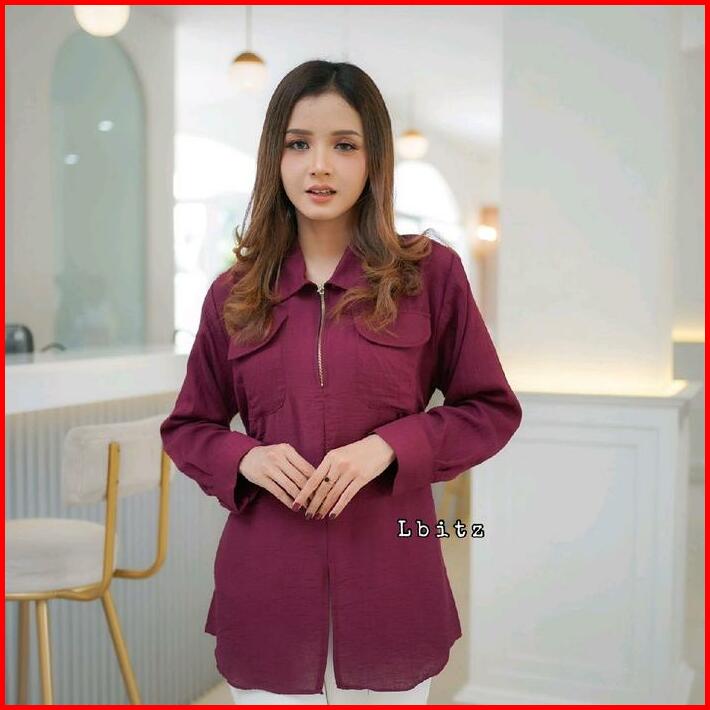 Lbitz- Zoya Shirt Top Kemeja Blouse Korean Style Zipper Casual Formal Tali Samping Kemeja Wanita Atasan Baju Linen Panja