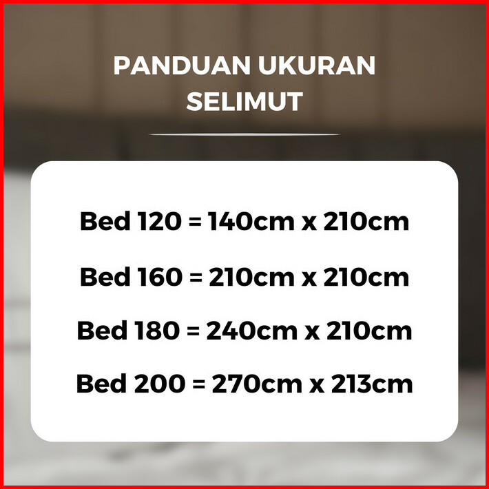 140CM X 210CM , 210CM X 210CM, 240CM X 210CM, 270CM X 213CM