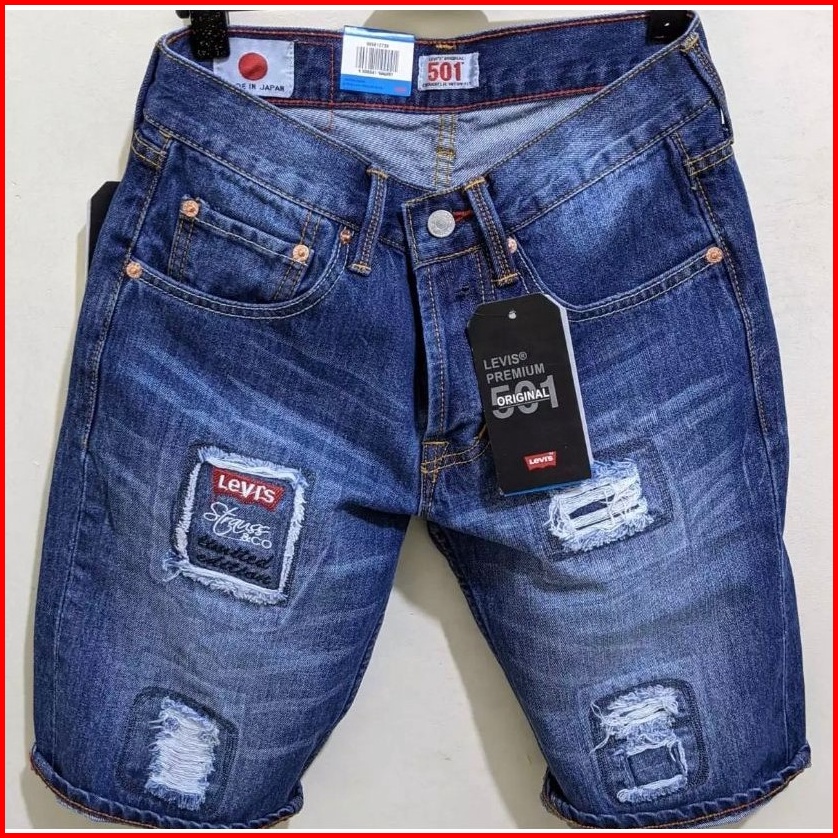 Celana Pendek Jeans Pria Motif Sobek Bordil Terbaru