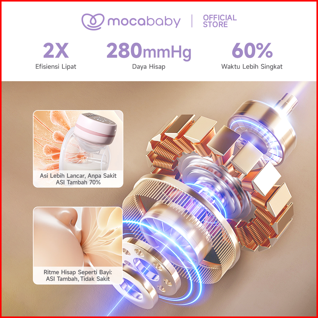 Mocababy Pompa Asi Elektrik Tanpa Rasa Sakit Wearable Hands Free Wireless Electric Hisap Kuat Breast Pump