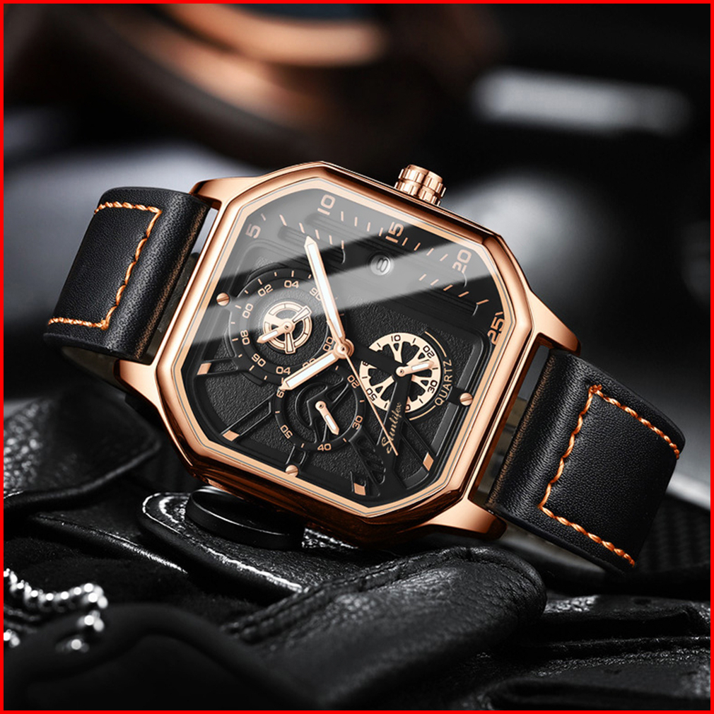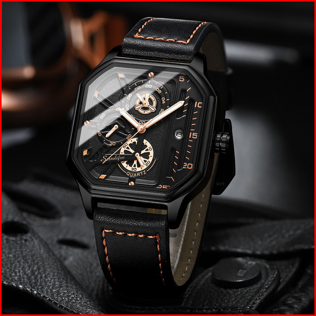 Jam Tangan Pria Original Sunlifex Kuarsa Olahraga Kasual Tali Kulit Jam Tangan Cowok