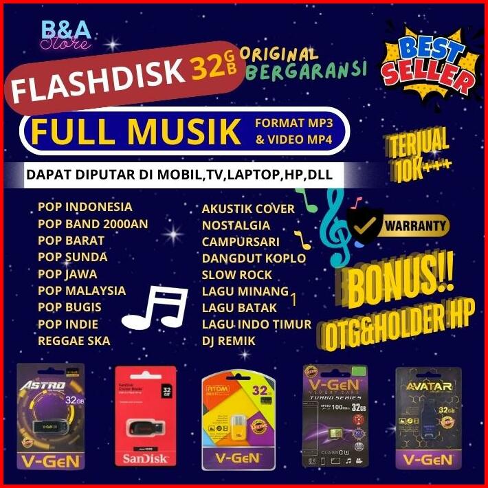 Flashdisk Musik 32gb Berbagai Genre Mp3 Mp4 Untuk Mobil Media Player Tv Android Bonus Otg Holder Hp Penyimpanan Storage